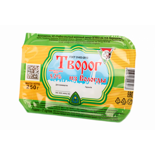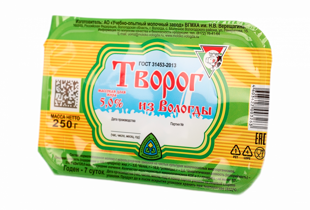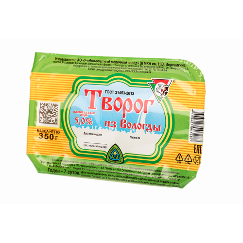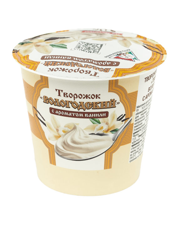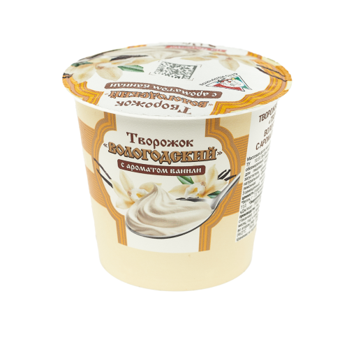 Творожный продукт "Творожок Вологодский" "Ваниль" Объем масса 130 г Жирность 5% В упаковке 6 шт Срок годности 7 суток