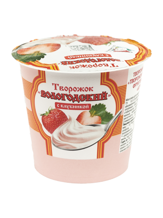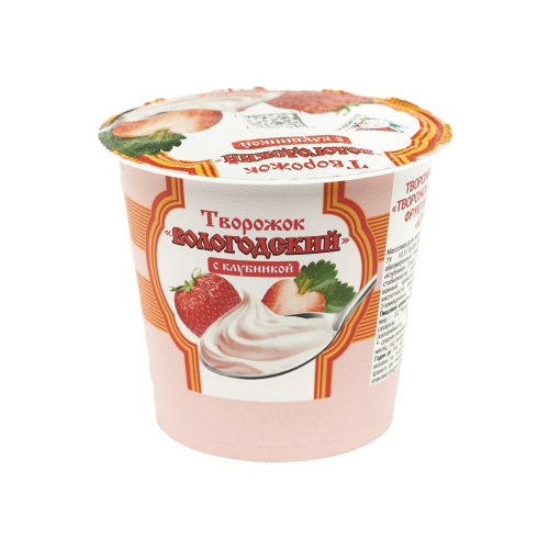 Творожный продукт "Творожок Вологодский" "Клубника" Объем масса 130 г Жирность 5% В упаковке 6 шт Срок годности 7 суток