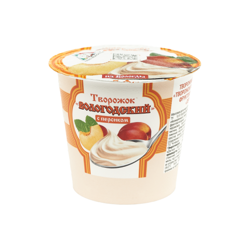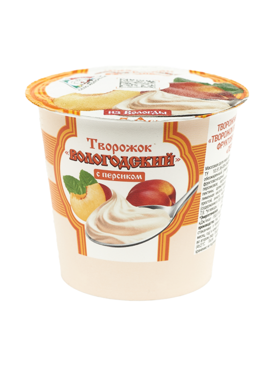 Творожный продукт "Творожок Вологодский" "Персик" Объем масса 130 г Жирность 5% В упаковке 6 шт Срок годности 7 суток