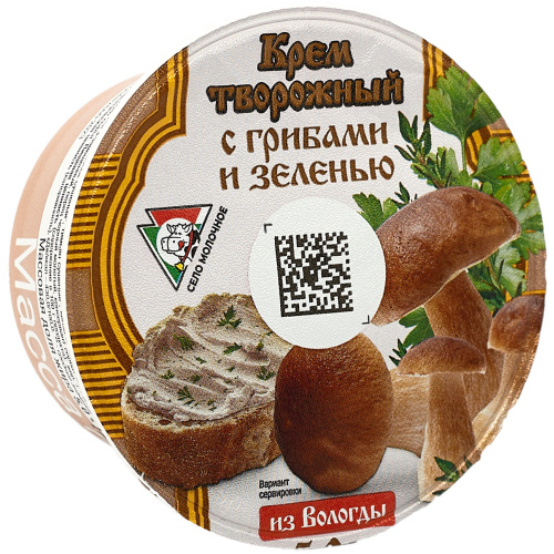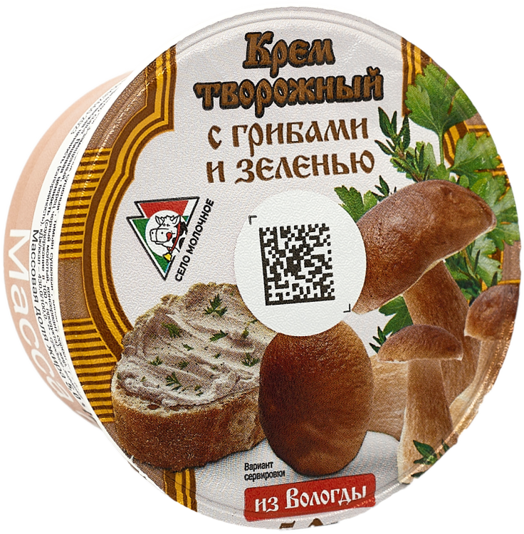 Крем творожный "Вологодский" с грибами и зеленью Объем масса 140 гр Жирность 5% В упаковке 6 штук Срок годности 14 суток