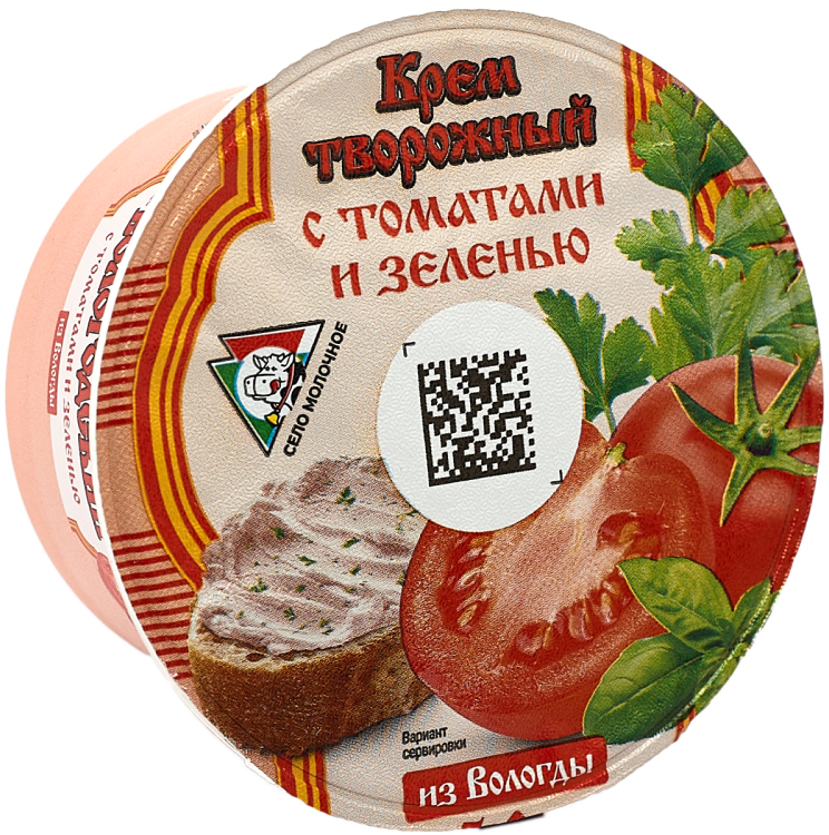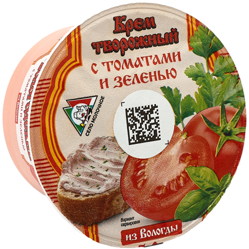 Крем творожный "Вологодский" с томатами и зеленью Объем масса 140 г Жирность 5% В упаковке 6 шт Срок годности 14 суток